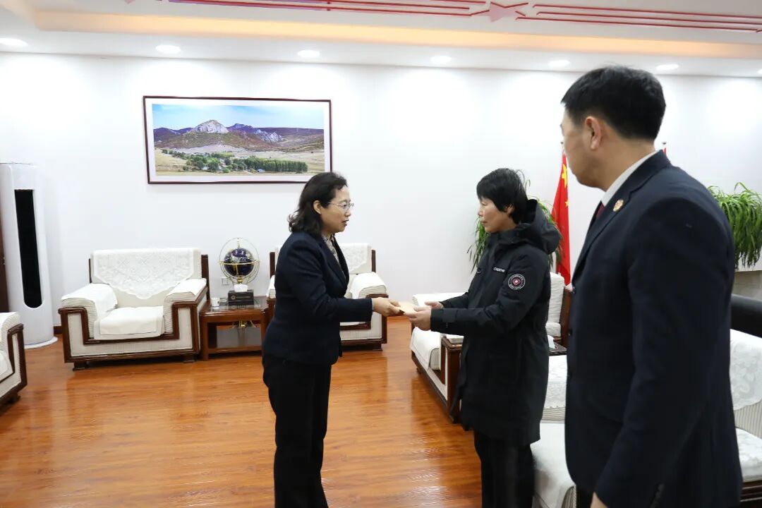 荆晓飞代表院党组感谢自治区检察院对保安沼检察及检察人员的支持与关心。院党组也将一如既往认真落实好上级院对检察人员的各项关爱措施与要求,尽最大努力帮助解决实际困难,不断提升职业归属感,增强检察队伍的凝聚力和向心力。